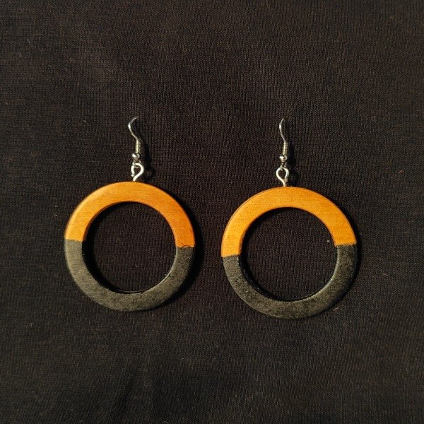 Par de aretes Cookie tallado en madera desconocida con detalles en negro