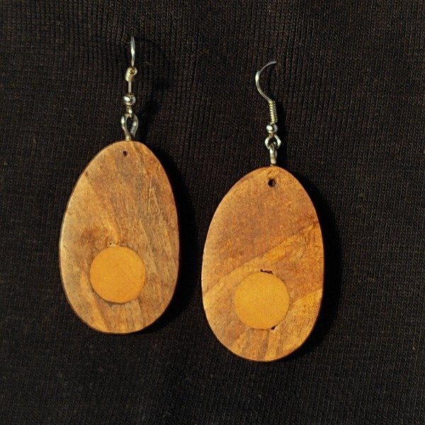 Par de aretes Oi tallado en composición de madera de Nogal con insertos de guatambú